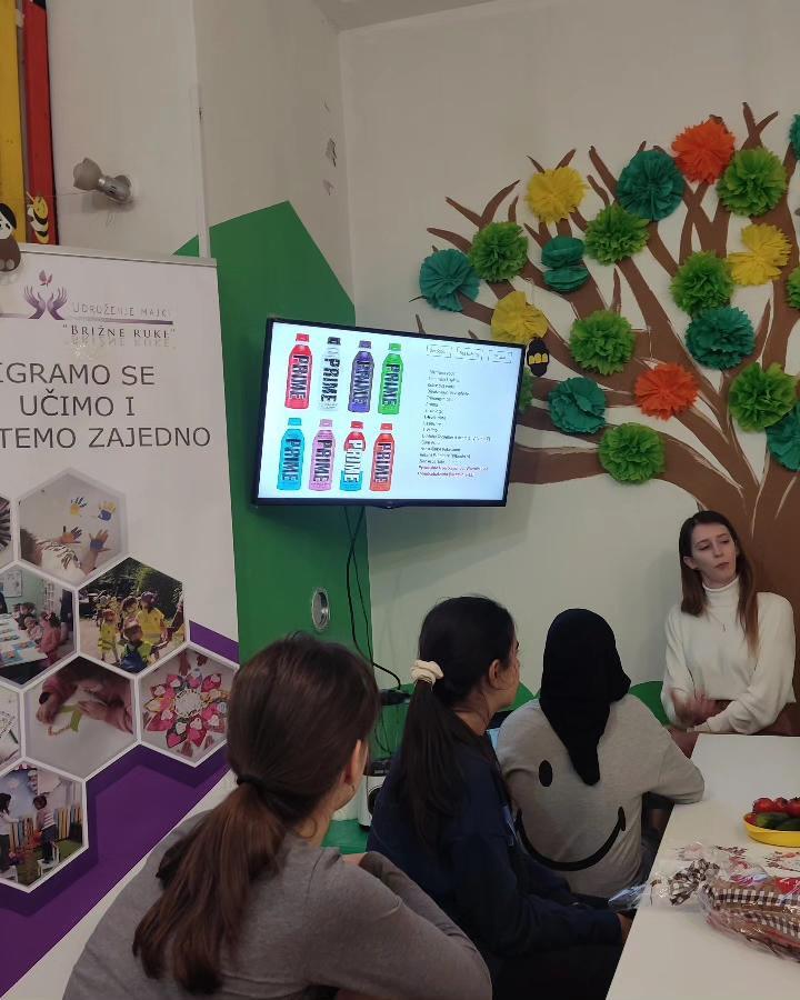 Projekt je obuhvatao niz aktivnosti, uključujući dvije radionice za djecu i dva predavanja za roditelje. Radionice su bile prilagođene dvjema starosnim skupinama: tinejdžeri u teen klubu i djeci predškolskog uzrasta. Tokom radionica, vodili smo računa o interaktivnosti i praktičnosti sadržaja, težeći da pružimo zanimljive i korisne informacije o zdravoj ishrani. Jedan od najvećih izazova bio je promijeniti percepciju o zdravoj hrani kod djece koja su bila naviknuta na konzumiranje brze hrane i nezdravih užina. Paralelno s radionicama, održana su dva predavanja za roditelje. Prvo predavanje usmjereno je na osnove zdrave ishrane za djecu, s posebnim naglaskom na izazove poput Prime pića, vapea i snusa. Drugo predavanje fokusiralo se na predstavljanje brzih i jednostavnih recepata koji su nutritivno bogati, ali jednostavni za pripremu, čime smo željeli pokazati da zdrava ishrana može biti i praktična i ukusna.